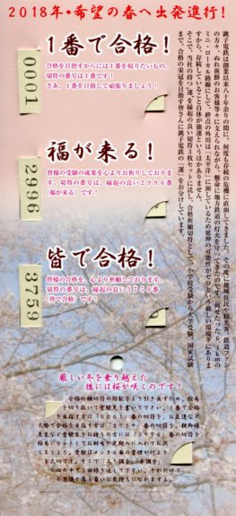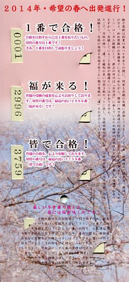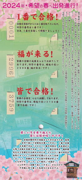 | 平成26年(2014年) 合格祈願切符 くもなしあかりバージョン | |
